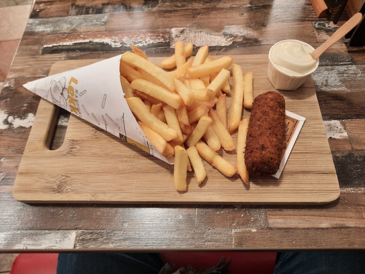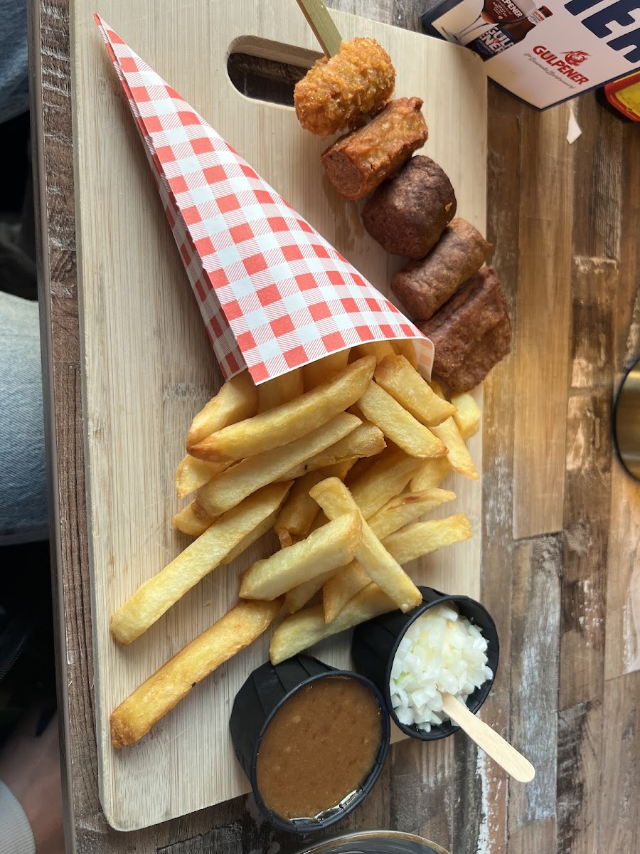 One of the standout dishes at Brasserie & Cafetaria 77 is the Fricadelle Frites. This classic Dutch snack features a juicy, flavorful fricadelle sausage served alongside crispy, golden fries. The perfect combination of tender meat and crispy fries makes for a satisfying meal that's sure to hit the spot. Another popular dish is the Friet Met Groente Kroket, which features a traditional Dutch croquette filled with vegetables, paired with a generous serving of fries. This dish is a real crowd-pleaser, offering both comfort and flavor in every bite.